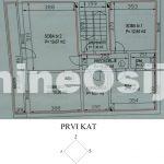 —1. KAT-stan 1 (102m2): hodnik, 3 sobe, kuhinja i blagovaona, kupaona, ostava, balkon.