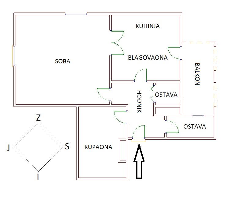 -Sastoji se od: hodnika, kupaone, kuhinje sa blagovaonom, sobe, 2 ostave, balkona.